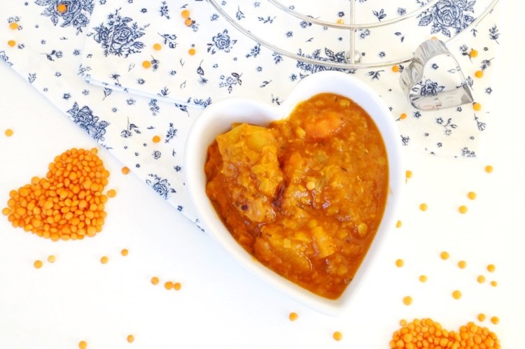 Zuerst geht’s ab an die Schnibbelarbeit. Schneidet die Karotten, die Kartoffeln, die Aubergine und den Kürbis würfelig. Den Lauch und die Zwiebel schneidet ihr in feine Streifen und den Seitan in mundgerechte Stücke.