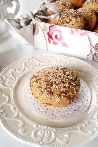 Amaranth-Dinkelbrötchen mit einer Leinsamen-Sesamkruste