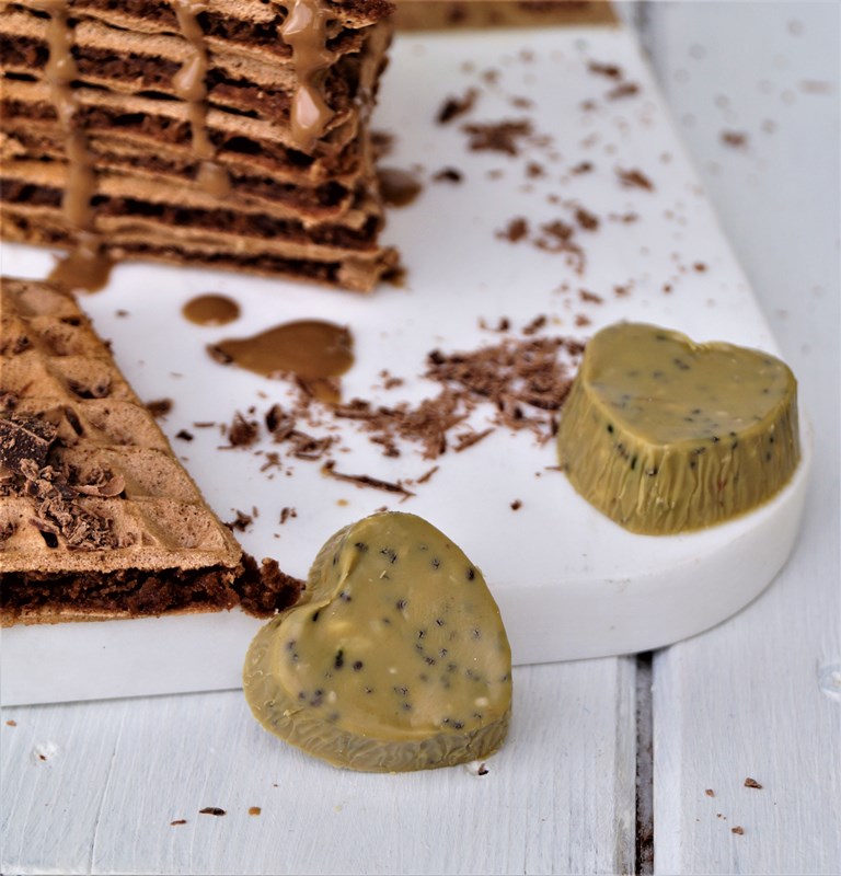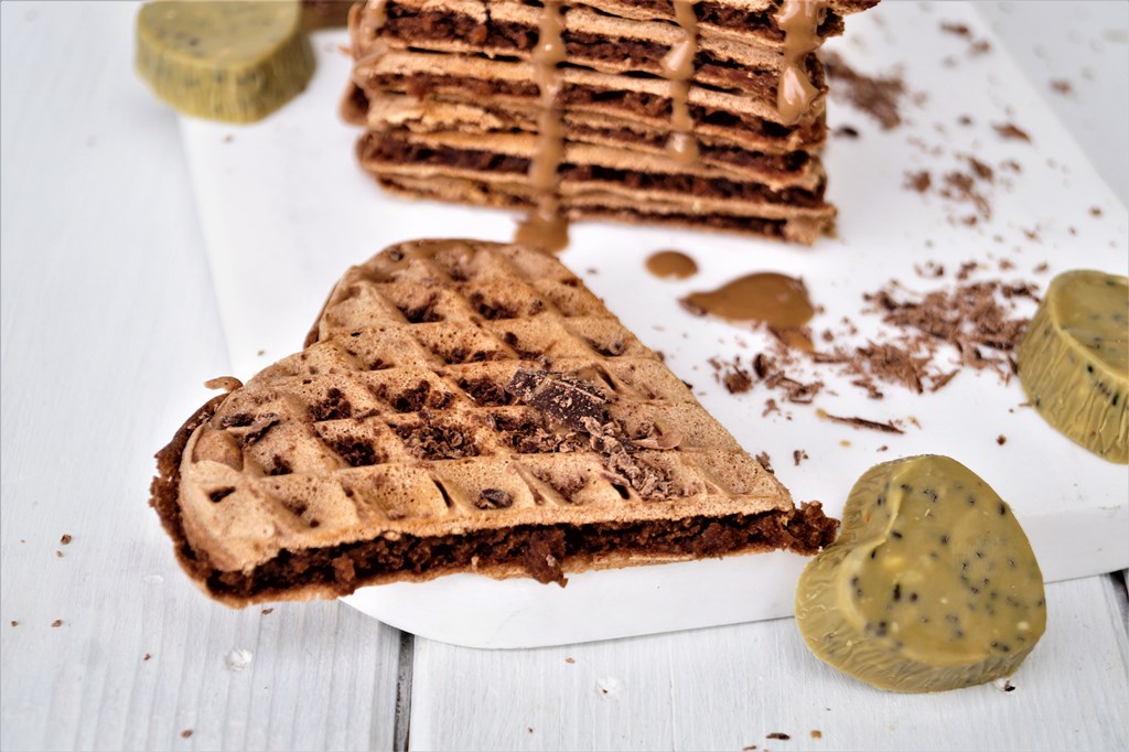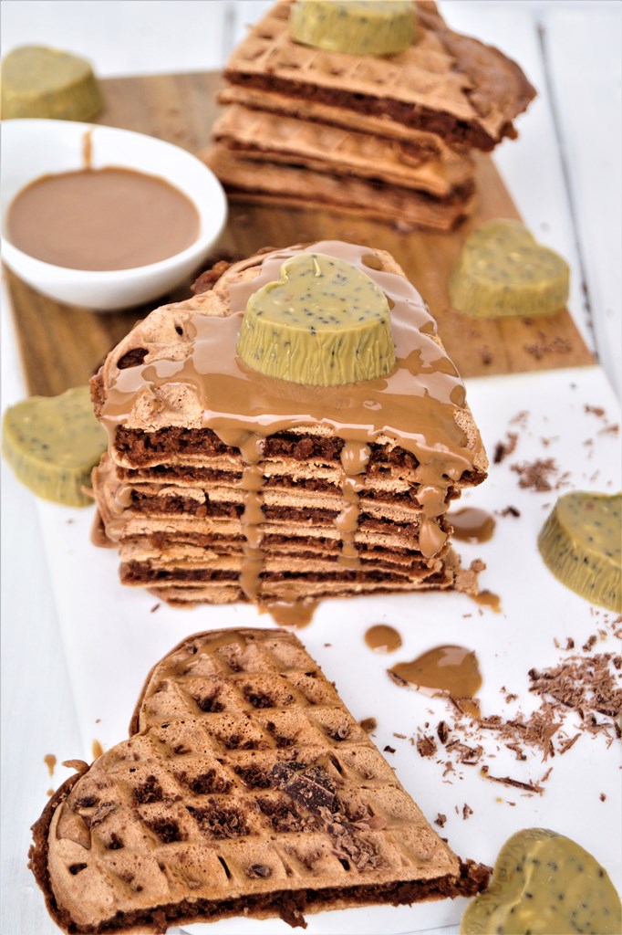Da Liebe ja bekanntlich durch den Magen geht, finde ich selbst kreierte Süßigkeiten oder Naschereien immer eine ganz süße Idee. Wie wär´s also, wenn ihr eure Liebsten doch einmal mit einem selbst gemachten Frühstück bestehend aus diesen super süßen und leckeren Herz-Waffeln verwöhnt? Dazu eine cremige Walnuss-Tahini-Sauce und als besondere Überraschung noch selbst gemachte Herz-Pralinen…? – Das kann schon was…