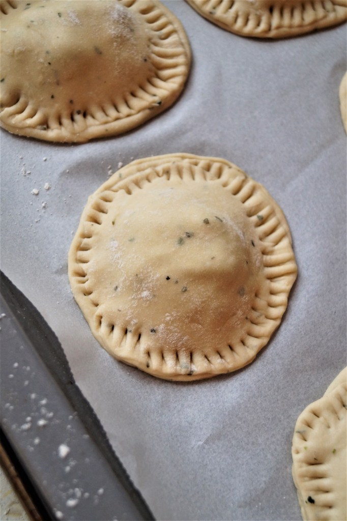 6. Gebt eure Pizzatascherln nun für zirka 15 – 20 Minuten bei ca. 200° Ober- und Unterhitze in den vorgeheizten Backofen.