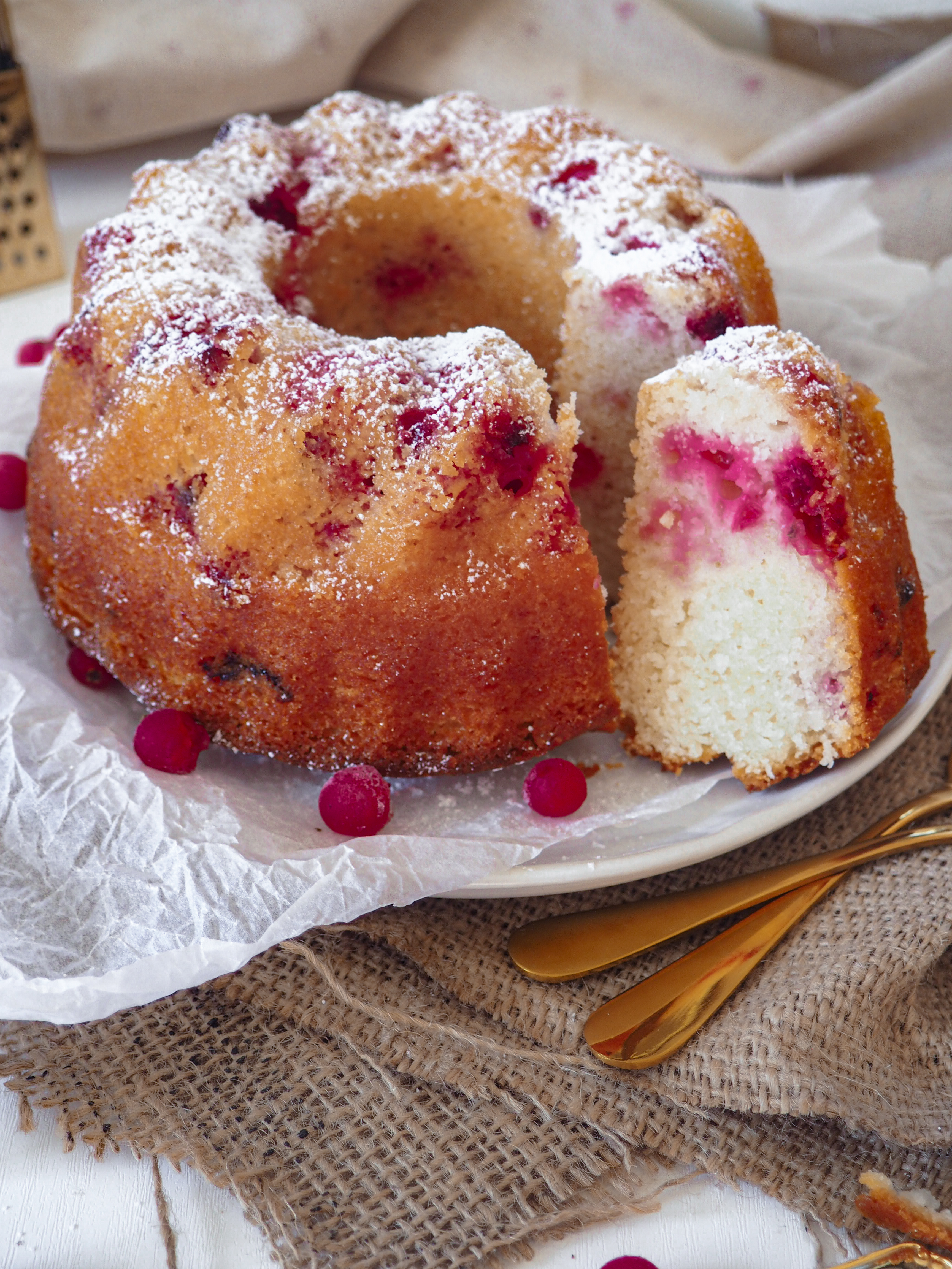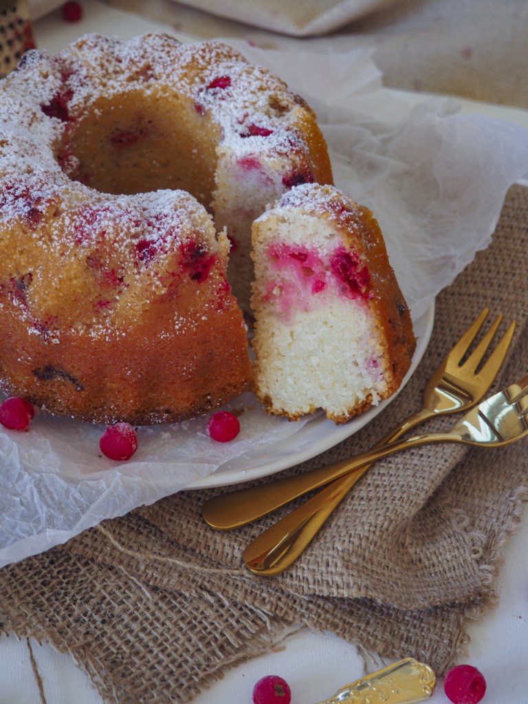 Backe, backe Kuchen… Jetzt wo das Wetter immer schlechter wird, wir mit trüben und nebligen Tagen rechnen müssen und die Temperaturen immer mehr und mehr sinken, bekomme ich wieder richtig Lust darauf, den ganzen Tag in der Küche zu stehen und kleine Leckereien zu backen. Wenn die ganze Küche nach frischem Kuchen oder Plätzchen duftet, macht das „zuhause sein“ auch gleich mehr Spaß. Ich nutze diese trüben Tage immer gerne, um neue Rezepte auszuprobieren und meine Liebsten mit meinen neuen Backkreationen zu überraschen… Im Sommer war unsere Ribiselernte richtig ausgiebig, sodass ich einige Portionen einfrieren konnte. Und welche Beeren eignen sich besser, um ein paar Sommergefühle wach werden zu lassen, als fruchtig saure Ribisel?? Deshalb gibts von mir heute ein Rezept für einen suuuuper saftigen und richtig fluffigen Ribisel-Vanille-Guglhupf. Bei uns war der gesamte Kuchen innerhalb einer Stunde aufgegessen 🙂